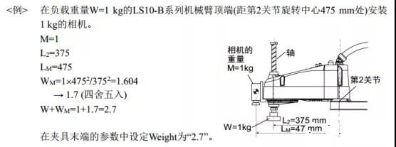 請務必將負載(夾具末端重量+工件重量)的離心率控制在200 mm以下。 LS10-B系列機,其他型號需要查詢對應機器人手冊。器人的設計不對應超過200 mm的離心率。另外,請務必根據(jù)離心率情況設定離心率參數(shù)。如果在離心率參數(shù)中設定小于實際離心率的值,則可能會導致發(fā)生錯誤或沖擊,這不僅不能充分發(fā)揮性能,而且還可能縮短各機構部件的使用壽命或因皮帶齒輪跳動發(fā)生位置間隙的可能性。